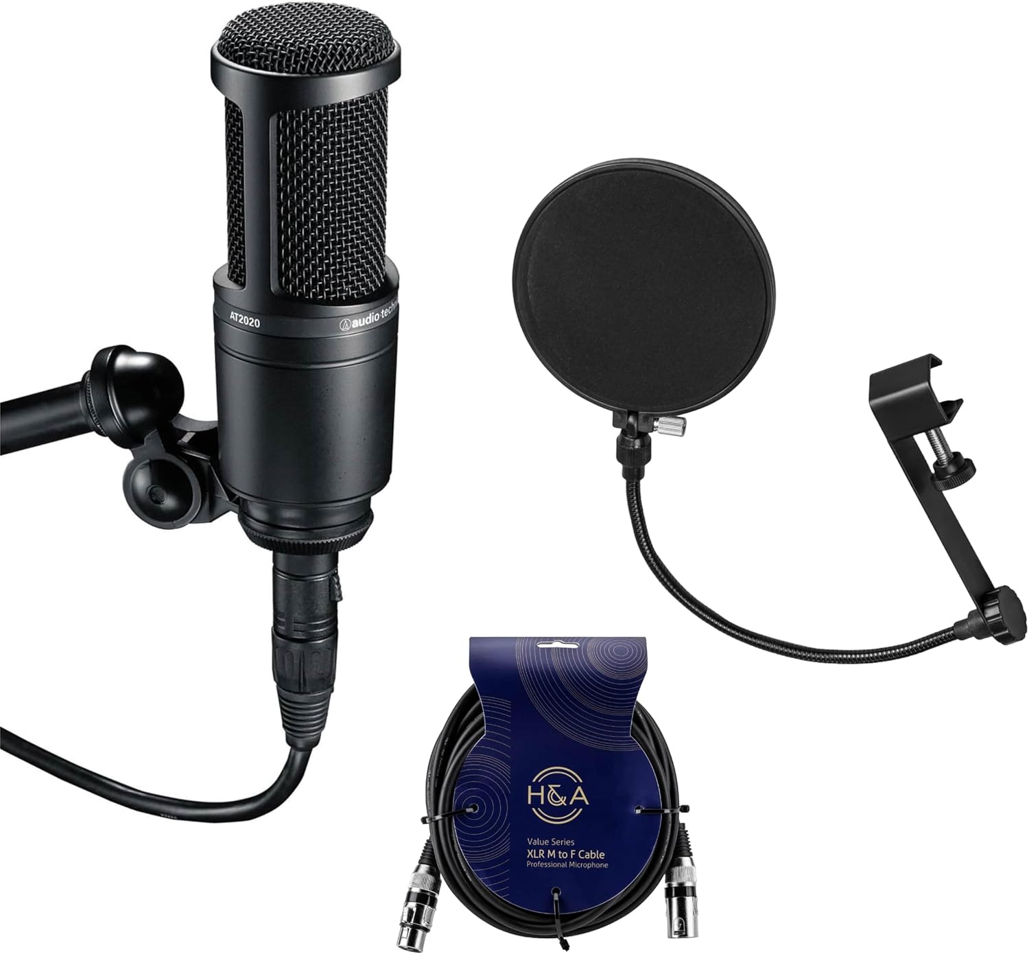 Audio Technica AT2020 Condenser Studio Microphone Bundle with Pop Filter and XLR Cable